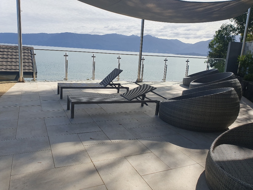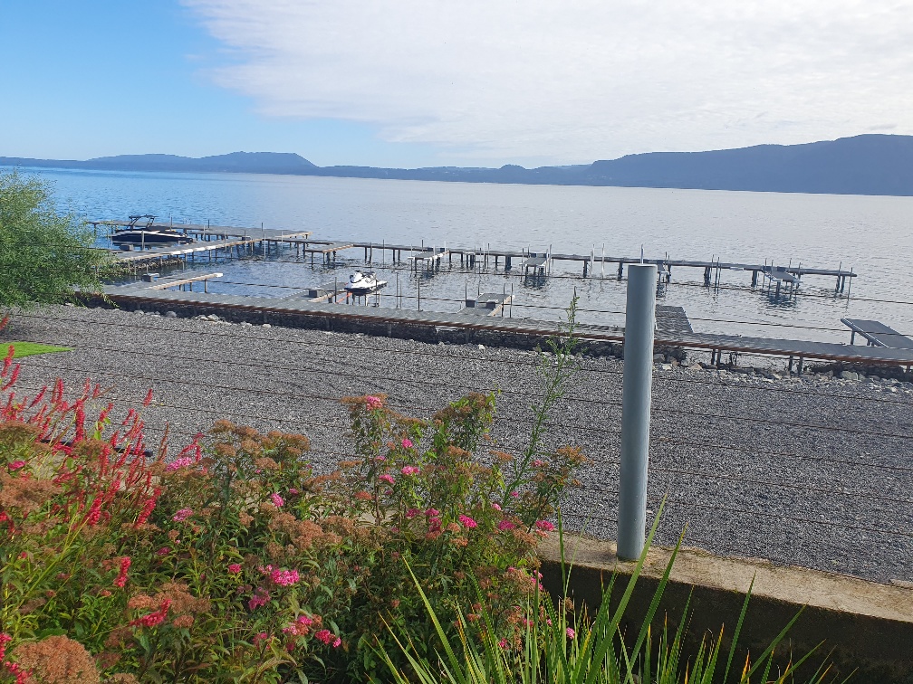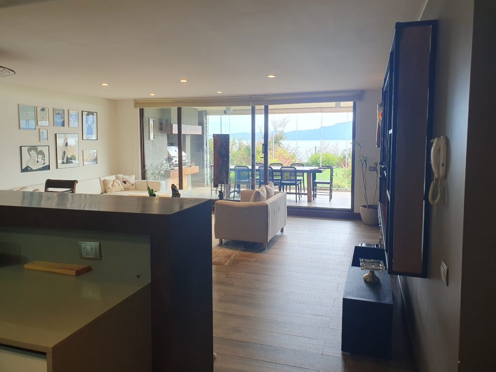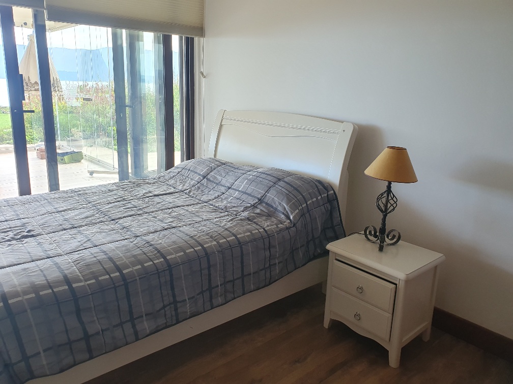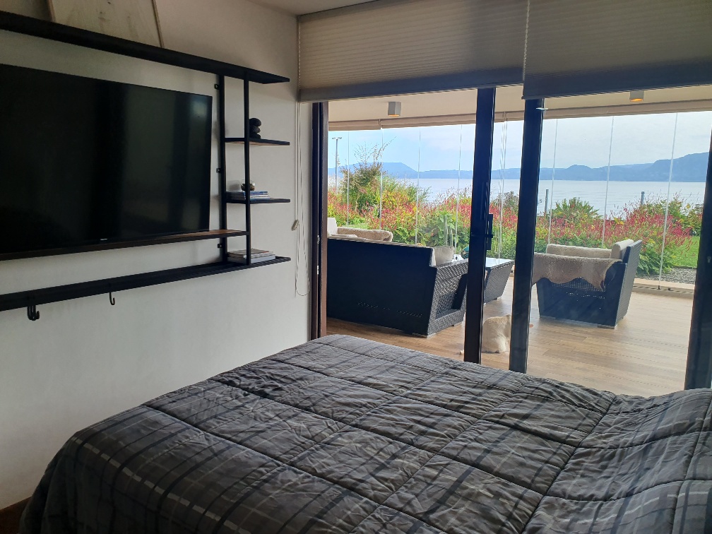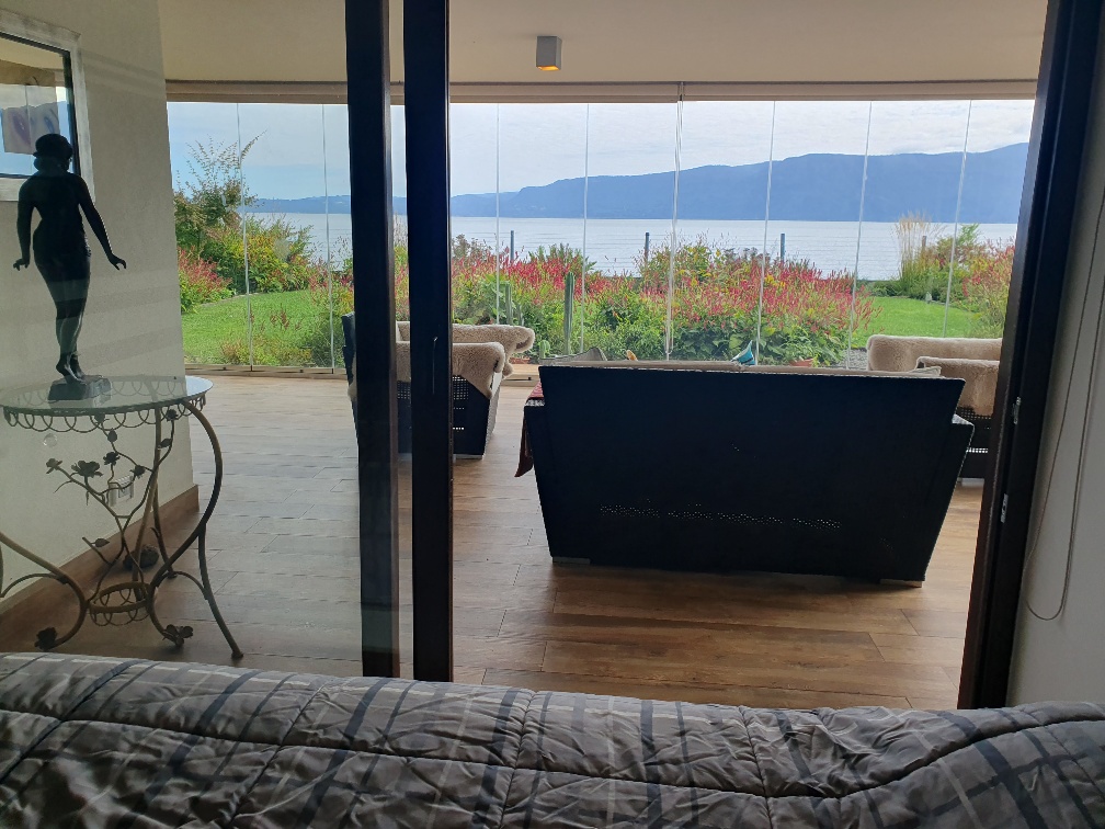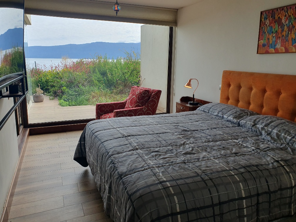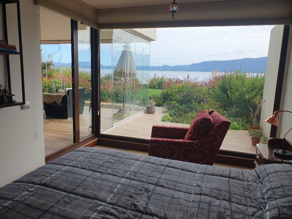 Se ubica en un primer piso y tiene un jardín privado. Hermosa vista al lago Villarrica.
