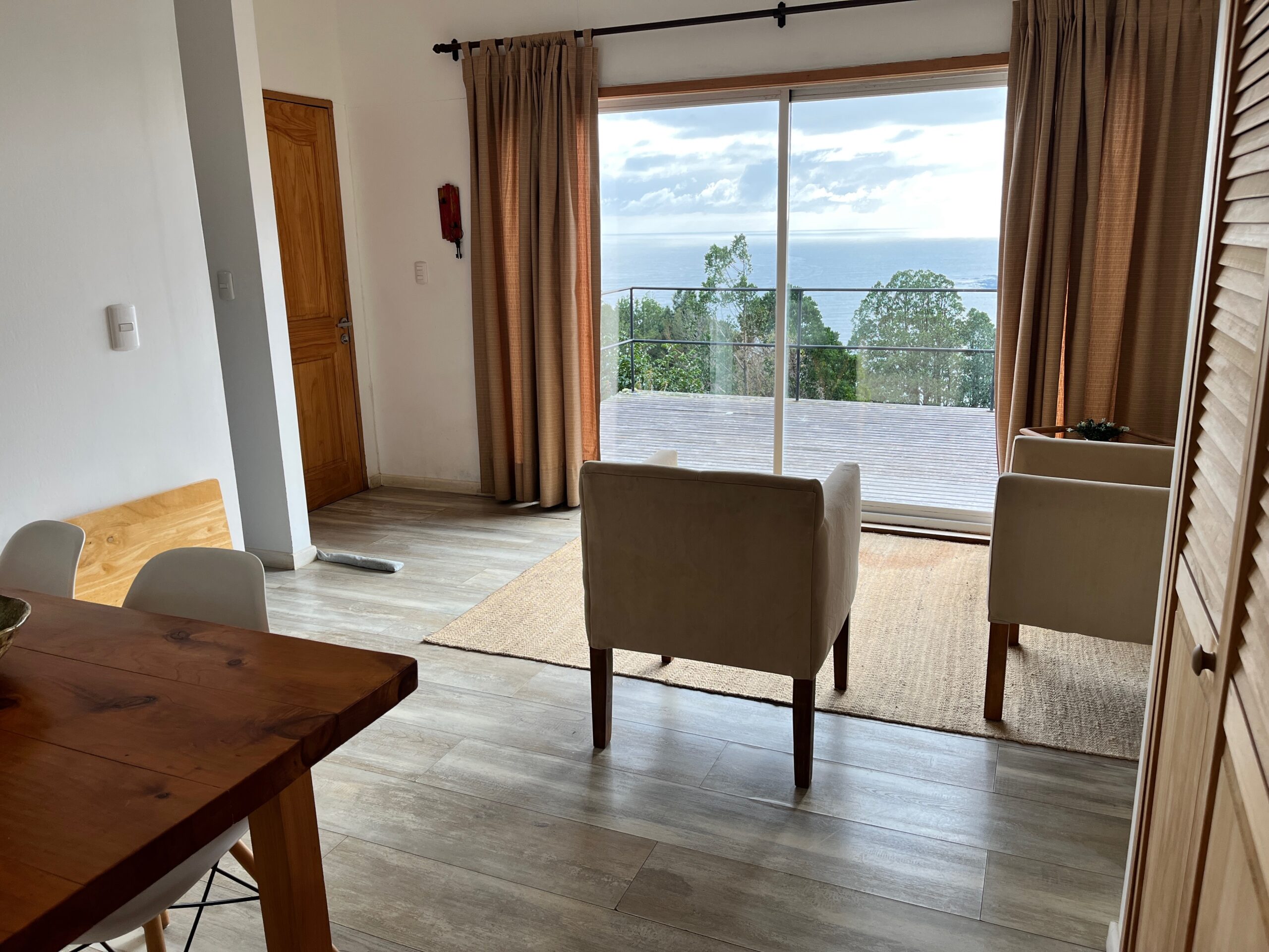 Cuenta con una hermosa vista al mar, en un lugar tranquilo con acceso con control remoto, a 30 min del centro de Valdivia.