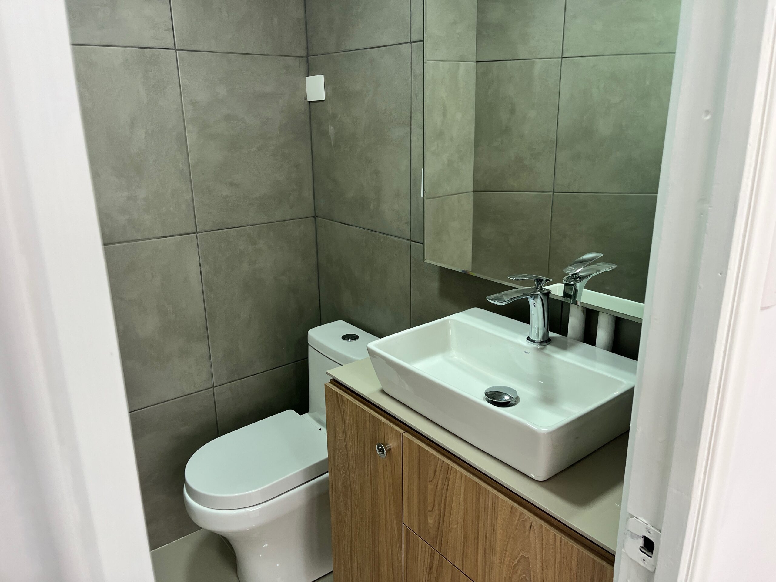 Consta de living-comedor con cocina americana, dos amplios dormitorios con closets y dos baños, más una pieza escritorio.
