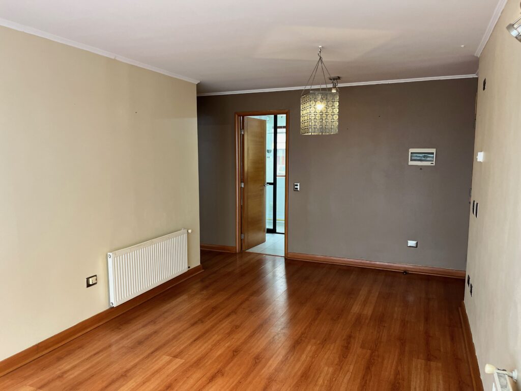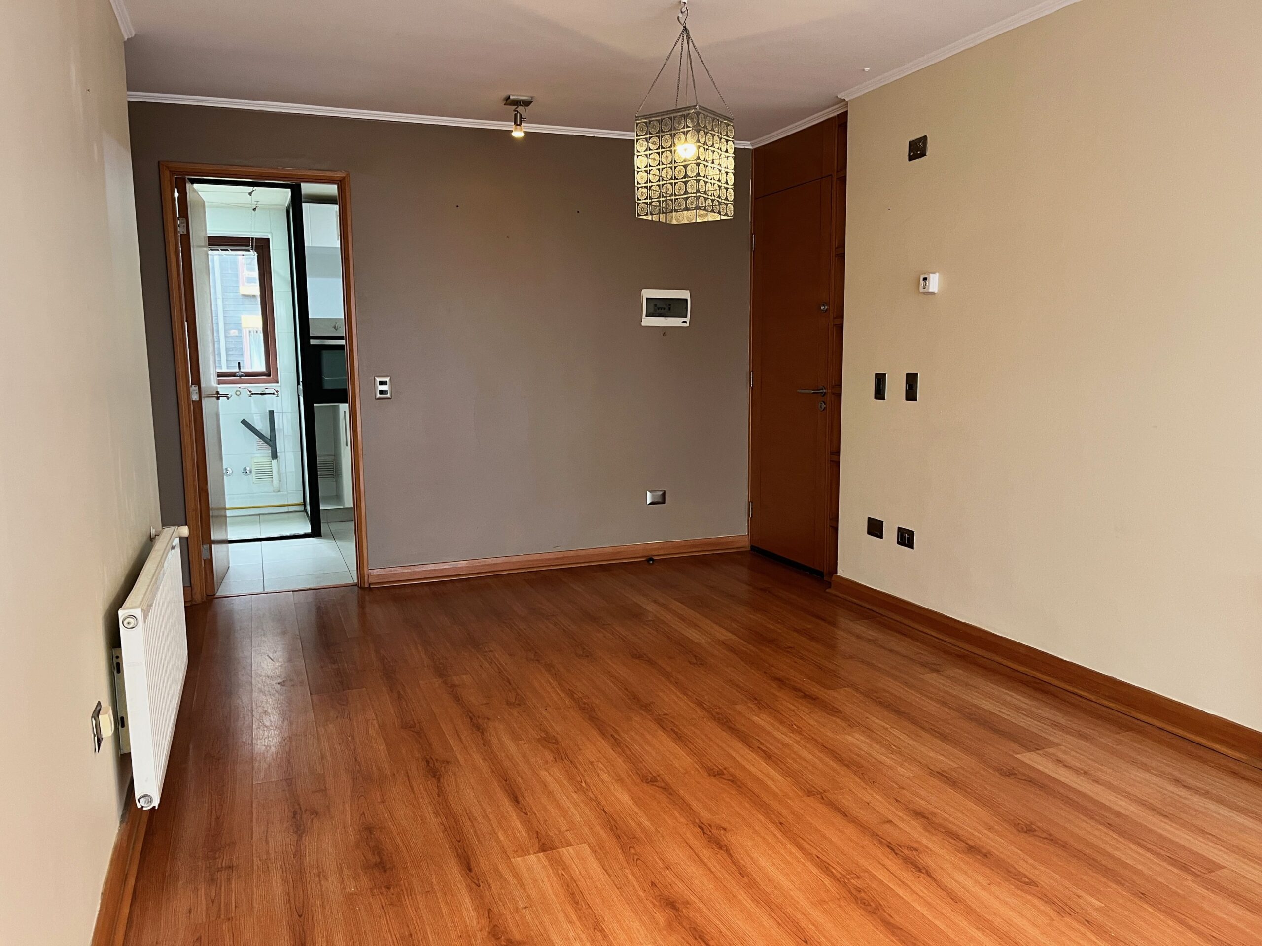 Este departamento cuenta con una superficie total y útil de 70 m², distribuidos en dos dormitorios y un baño. El edificio presenta una arquitectura moderna y se encuentra rodeado de áreas verdes, además de ofrecer una piscina exterior para el disfrute de sus residentes. El living-comedor está integrado y dispone de ventanales que permiten la entrada de luz natural, generando un ambiente agradable. La cocina está equipada y cuenta con muebles funcionales y espacio suficiente para electrodomésticos. El departamento incluye una bodega, lo que facilita el almacenamiento adicional. El edificio dispone de estacionamiento y acceso controlado, brindando comodidad y seguridad.