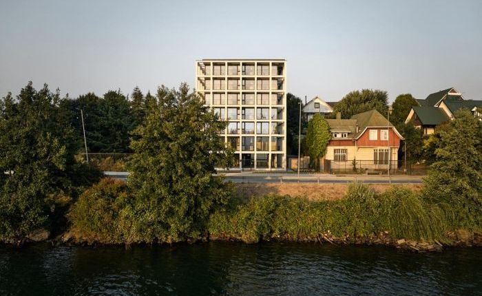Sala multiuso, y cowork o sala de estar panorámica con vista al río y costanera.